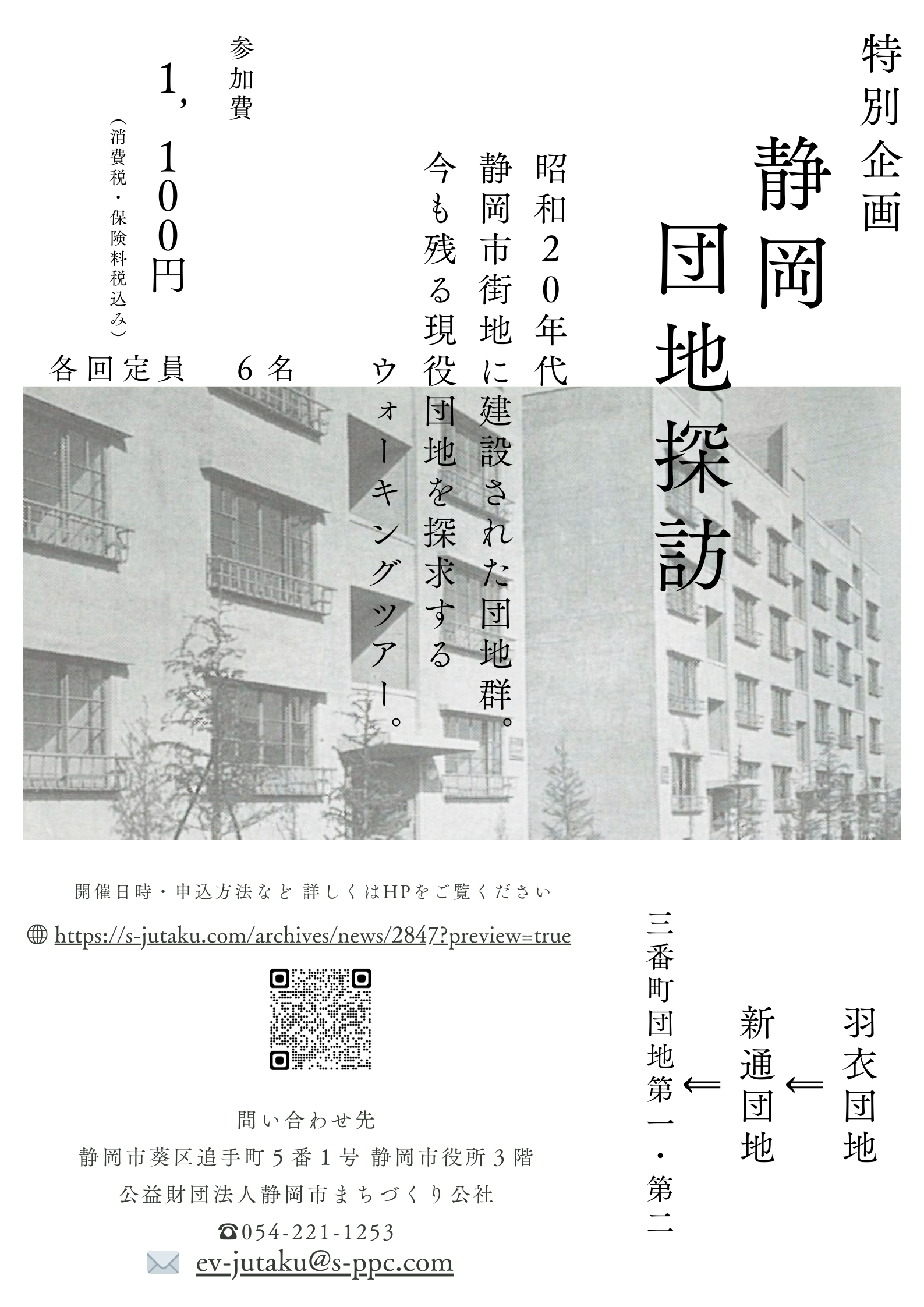 静岡市内にある昭和20年代公営アパート「48型」「49型」「50型」の団地建物&室内を巡るガイド付きウォーキングツアーを開催します。